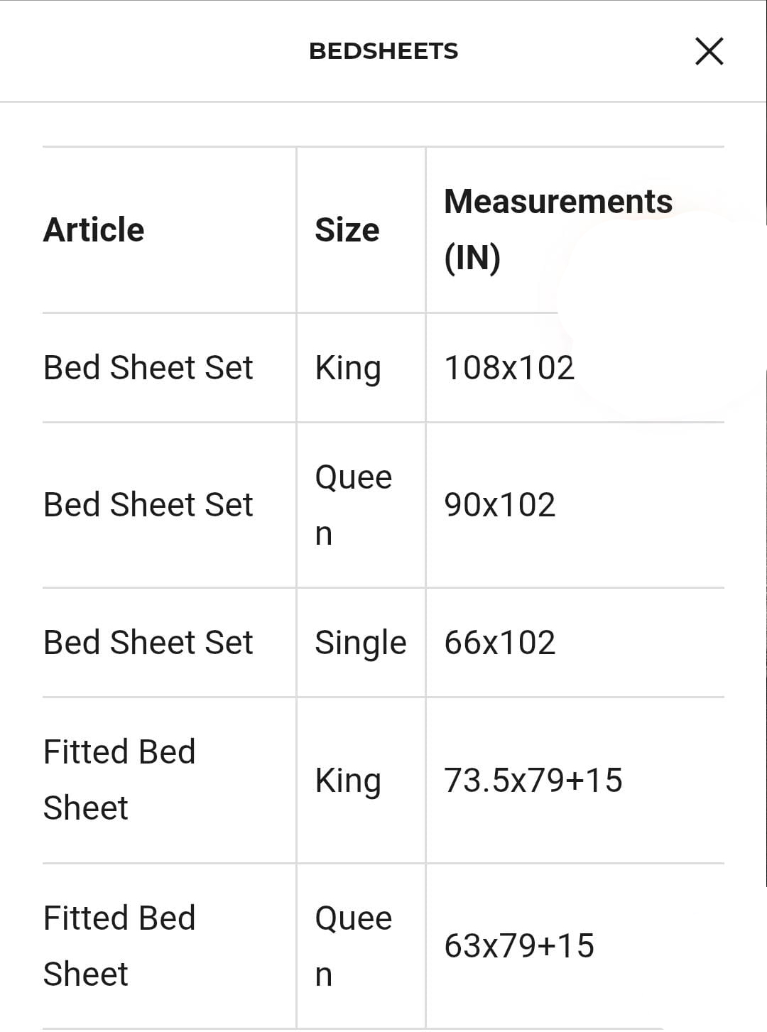 | Sheets | Flat sheet, Fitted sheet |